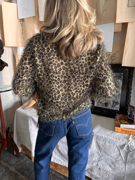 1990s does 1940s bed jacket leopard fuzzy